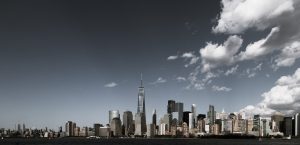 a black and white photo of a city skyline new york skyline, nft marketing, city culture