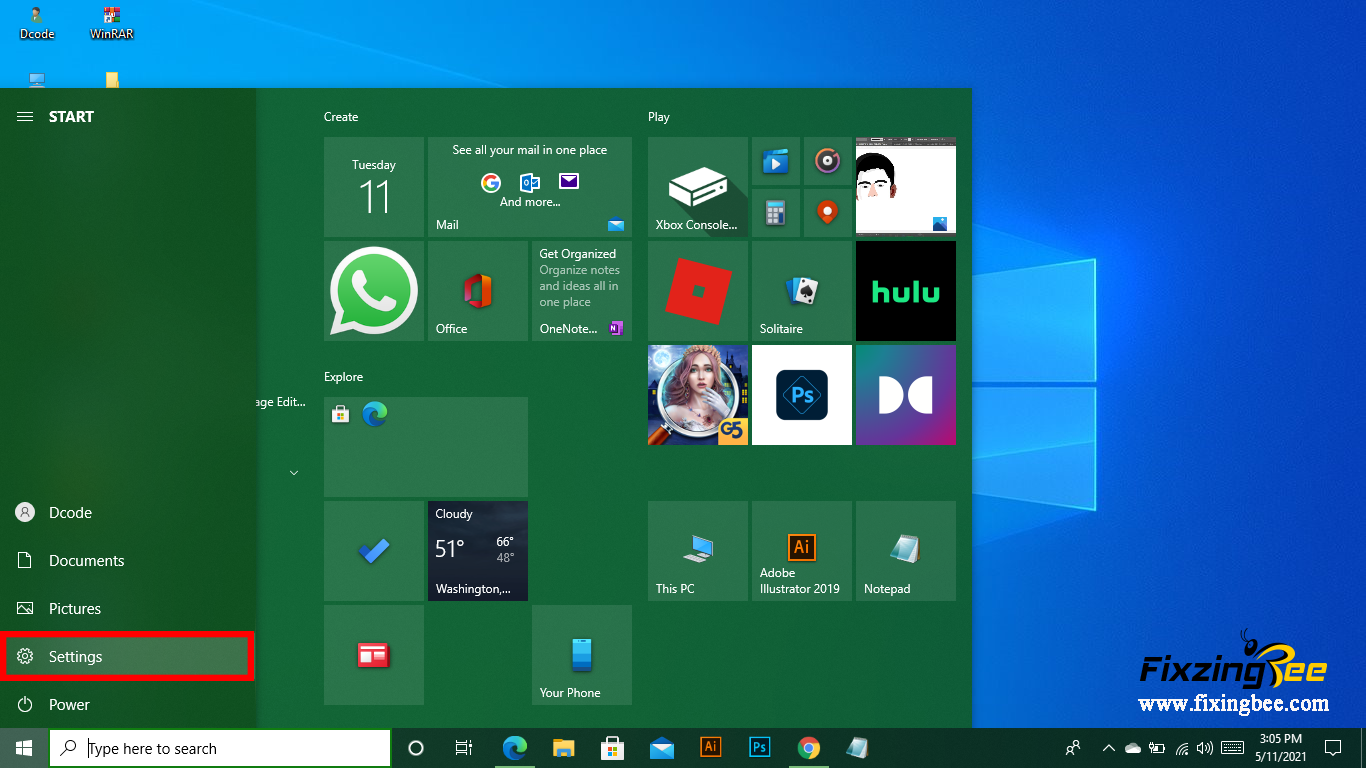 Step-1 Go to setting- Windows