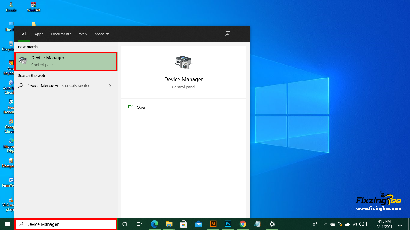 Step 1- Go to the search box and type device manager
